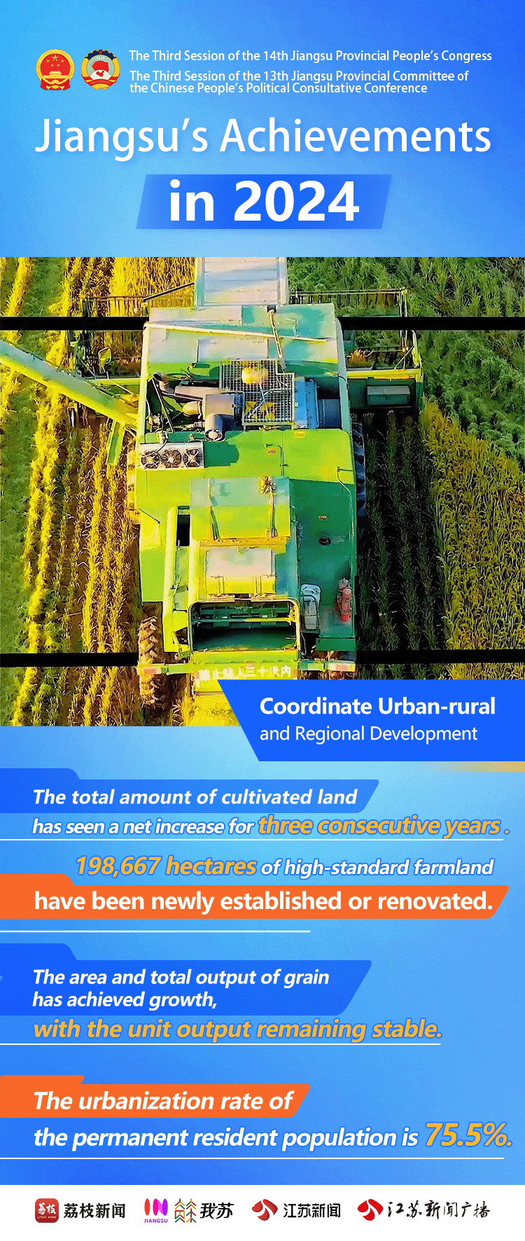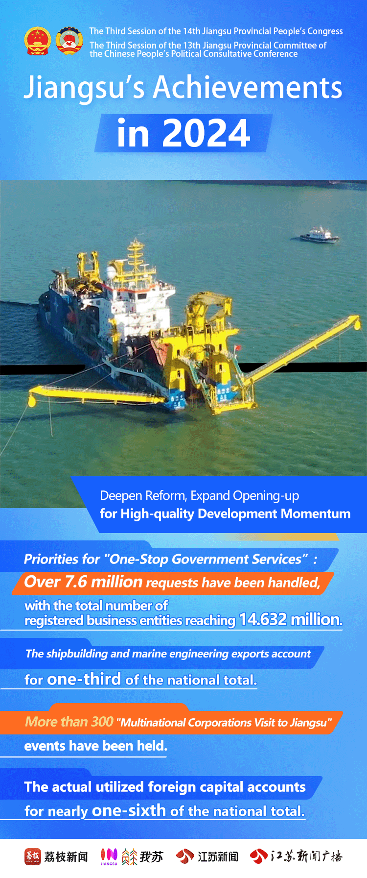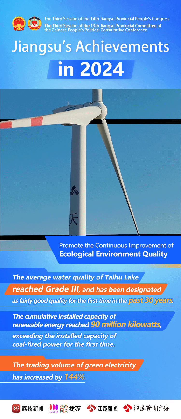 Naked-Eye 3D Dynamic Posters | Jiangsu's Achievements in 2024Issuing time:2025-02-10 16:34 On January 19th, the 3rd Session of the 14th Jiangsu Provincial People's Congress opened in Nanjing. Over the past year, Jiangsu has seen steady economic growth. Through high-quality development, Jiangsu has made achievements in its modernization drive featuring strong economy, prosperity for residents, beautiful environment, and developed culture and ethics. Let's take a look at Jiangsu's progress in 2024!
